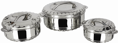 DESCRIPTION: Flora Hot Pot (3 Pcs. Set) Combination : 1000, 1500, 2500 ml (3 Pcs. Set) 1500, 2500, 3500 ml (3 Pcs. Set) 2500, 3500, 5000 ml (3 Pcs. Set) 3500, 5000, 7500 ml (3 Pcs. Set) 5000, 7500, 10000 ml (3 Pcs. Set) 3500, 5000, 7500, 10000 ml(4 Pcs. Set)