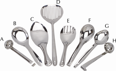 DESCRIPTION: (A) Dip-Dip (DXJ) Length : 16cm (B) Rice Server Length : 24 cm (C) Rice Pan Length : 22.7, 24 cm (D) Frying Skimmer Length : 32, 36 cm (E) Rice Panja Length : 22.5, 23 cm (F) Flot Length : 23.5, 24.5 cm (G) Donga Spoon Length : 21, 22.5, 25 cm (H) DIP-DIP Length : 13.5, 16, 19.7 cm